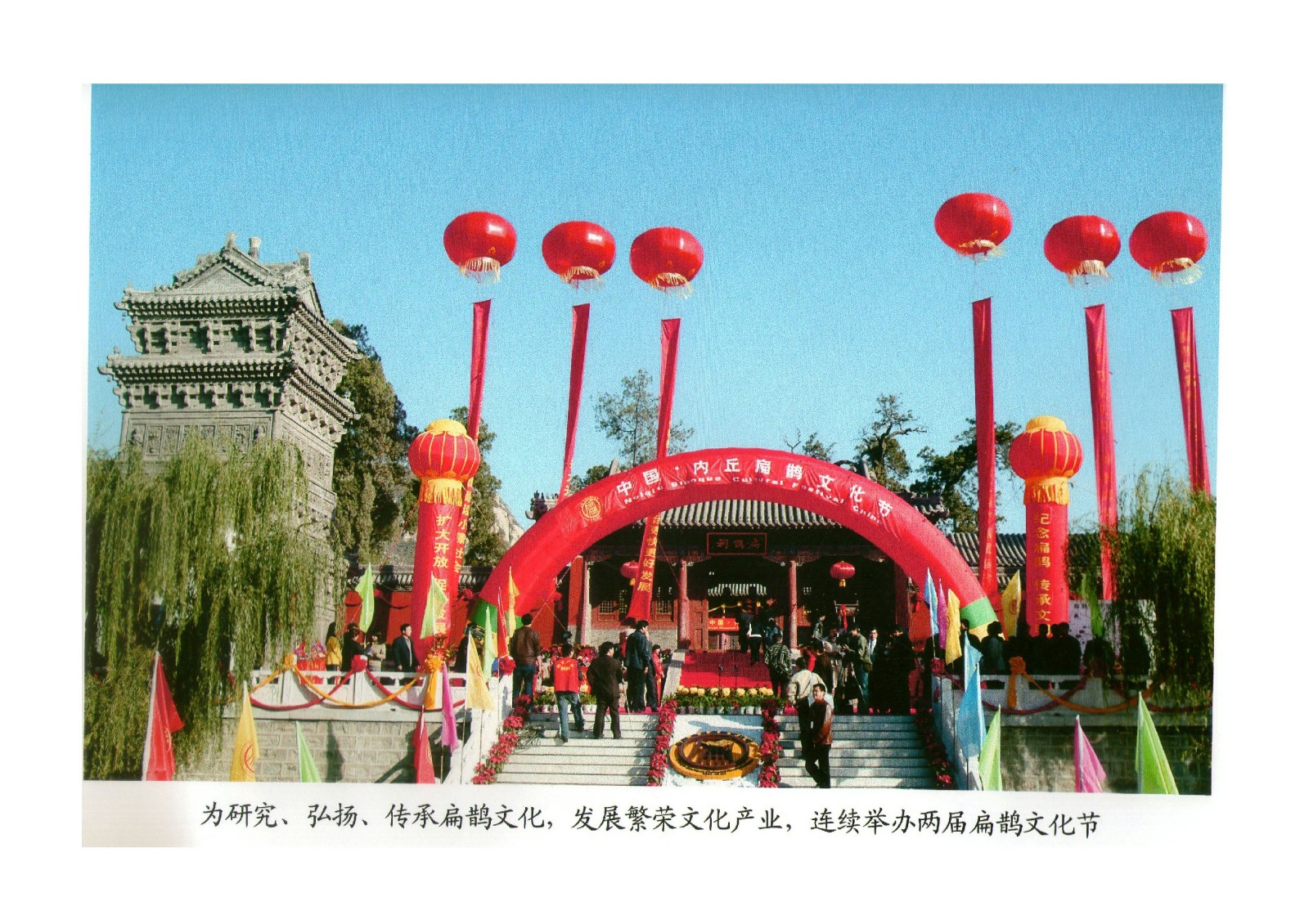 内丘县是扁鹊文化的发祥地,被命名为“中国扁鹊文化之乡”,成立了“中国扁鹊文化研究中心”,先后举办了两届中国(内丘)扁鹊文化节、两届中国(内丘)医祖扁鹊学术思想传承发展大会。近年来,内丘县大力实施唱文化戏,打造文化旅游名县的发展战略,举全县之力突出发展文化产业。